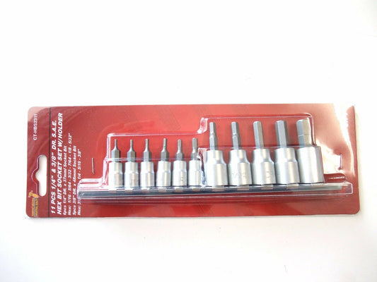 $22.00 AUDSale price $17.88 AUD11pcs 1/4" & 3/8" Dr. IMPERIAL Hex bit Socket set 1/16" - 3/8" Taiwan sockets
