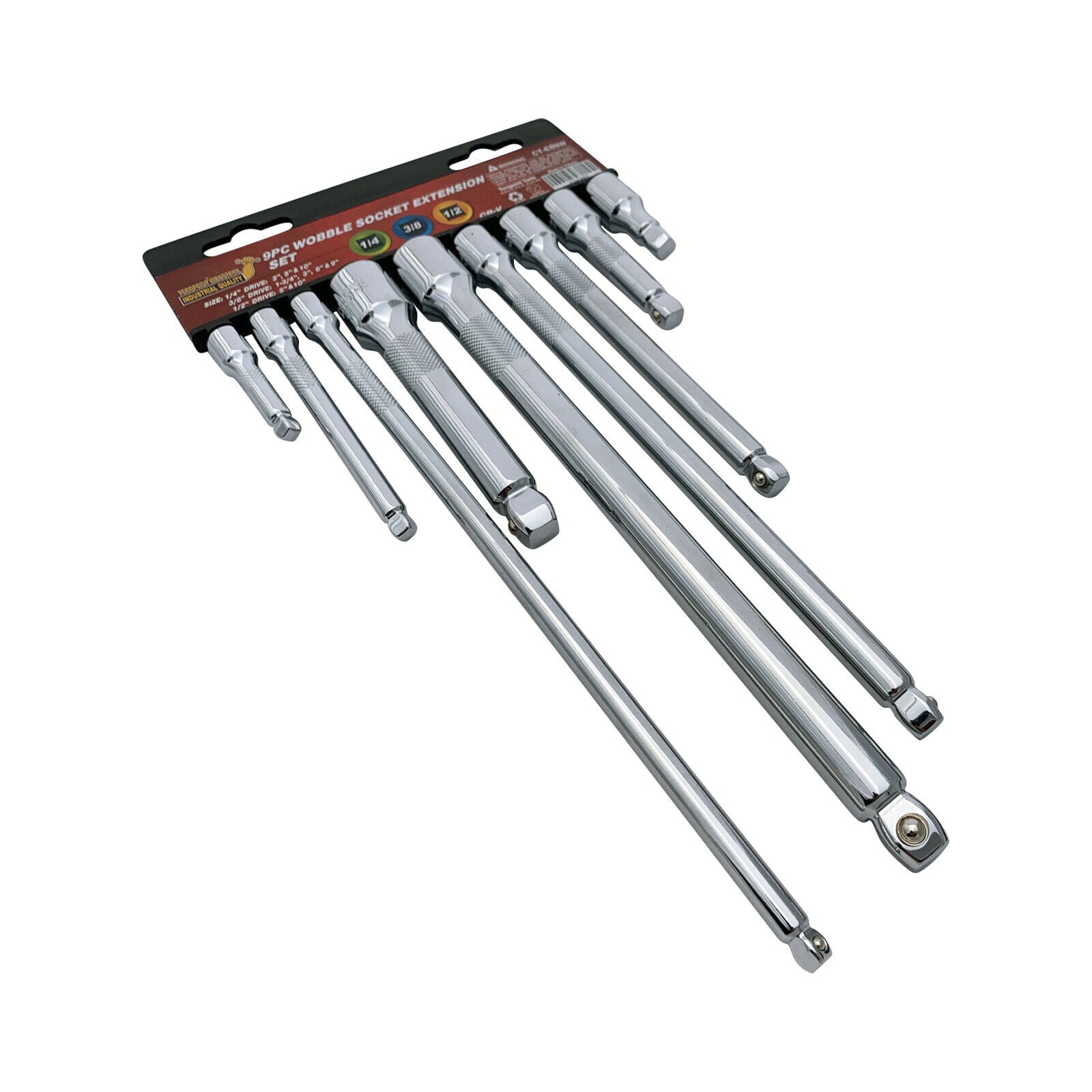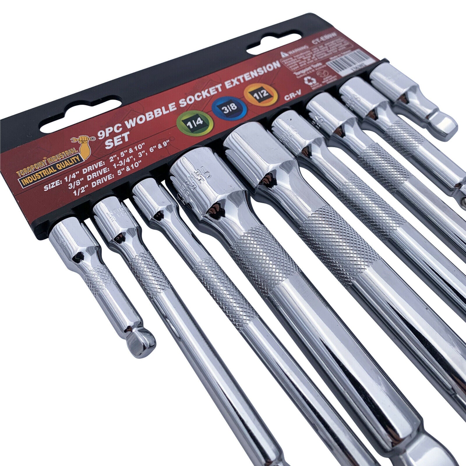 TORQPOINT INDUSTRIAL 9pcs 1/4 , 3/8 & 1/2" Drive wobble extension bar set